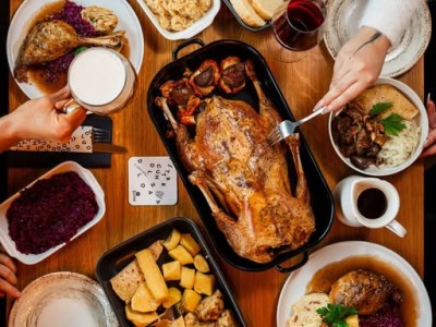 140g Pečená krůtí prsa na slanině špikovaná karotkou, červené zelí, houskové knedlíky 13