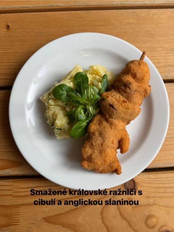 180g Smažené ŽAMPIONOVÉ HLAVIČKY, vařený brambor, tatarská omáčka (1,3,7)