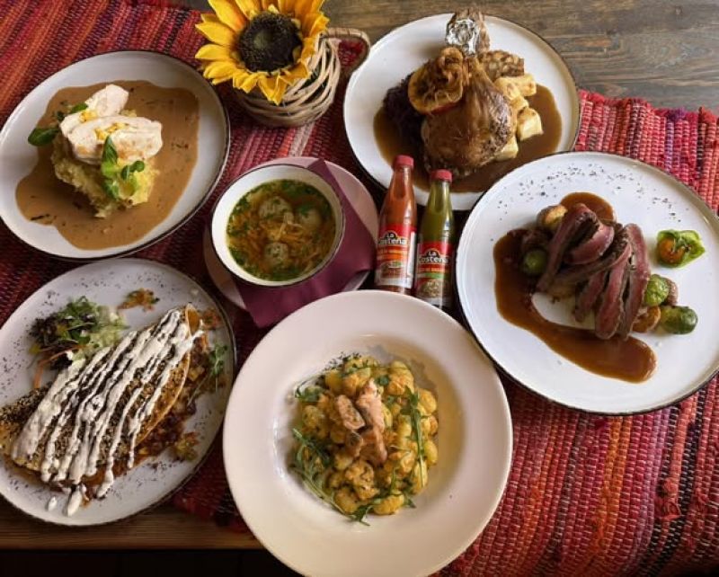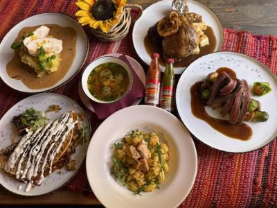 Zelené kari - pikantní omáčka s paprikou, chilli a limetou podávaná s rýží nebo s hranolkami, jako hlavní složku možné vybrat kuřecí maso, tofu (vgn), norskou tresku nebo smažený květák v harissa omáčce (vgn, bzl)