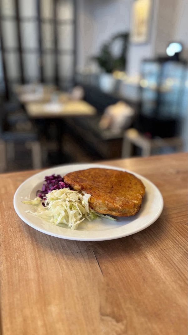 150g Smažený karbanátek, bramborová kaše, tomatový salátek 13710