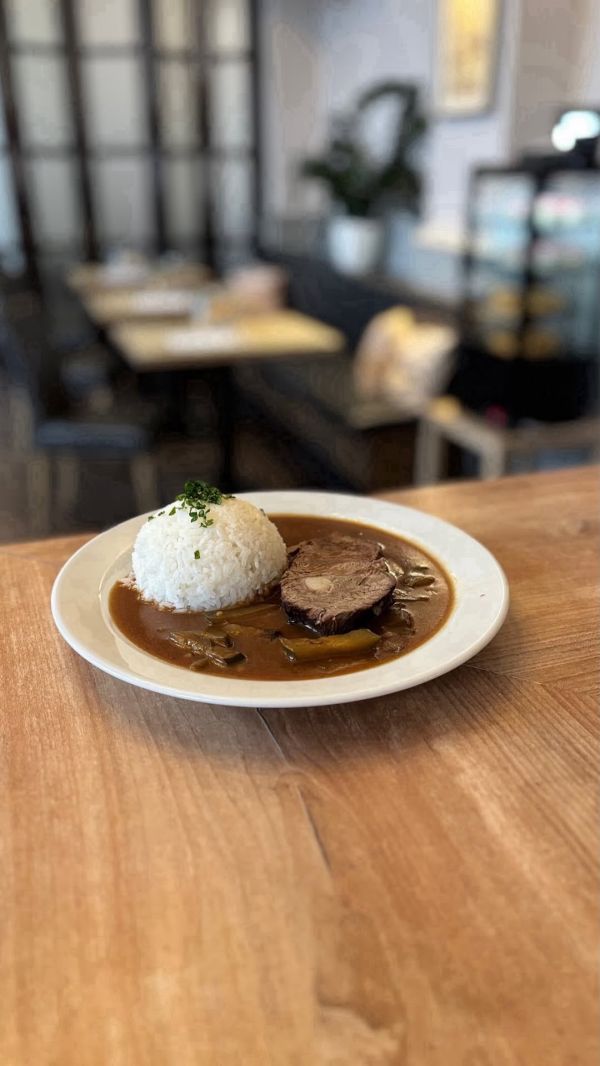 Hovězí rajská, houskový knedlík