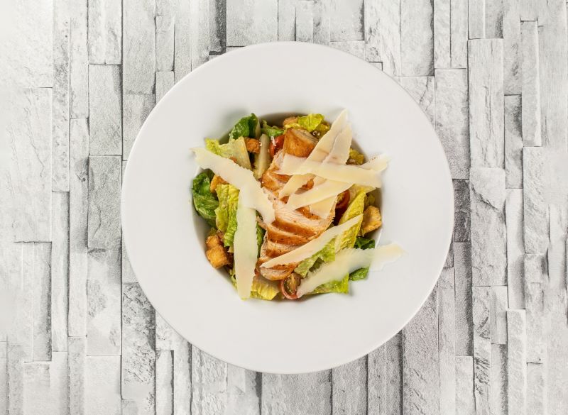 350g Zeleninový salát s kuřecím masem (100g), bagetka 1, 3, 7 137
