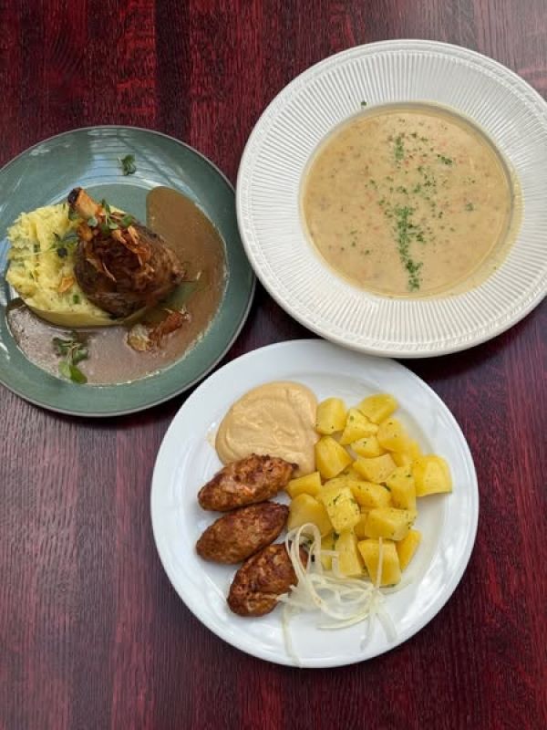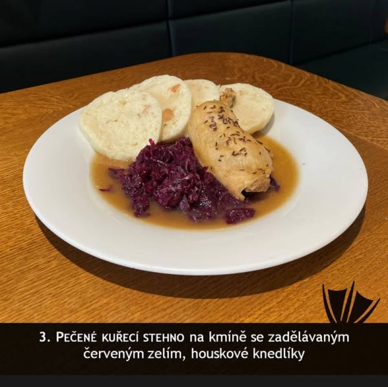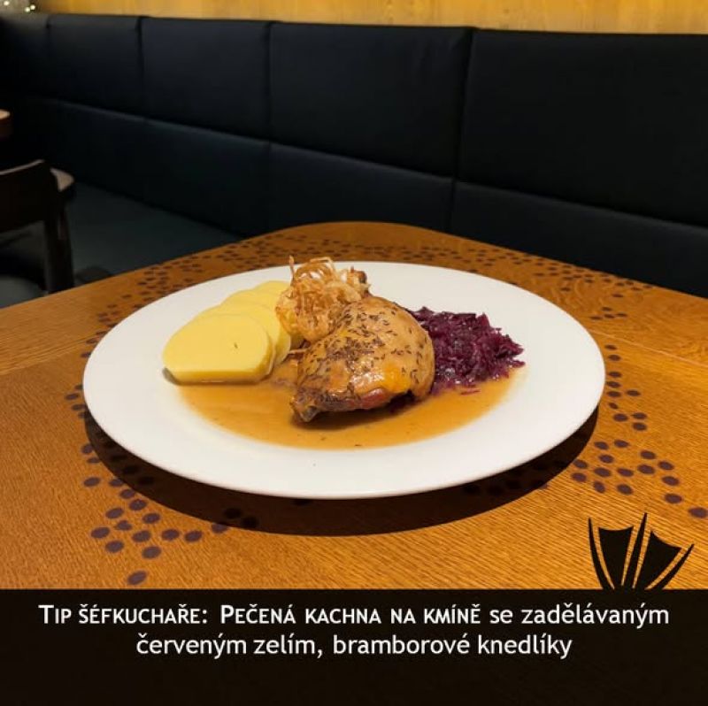 Pečená 1/4 kachny, červené zelí, variace knedlíků (obsahuje 1,3,7,9)