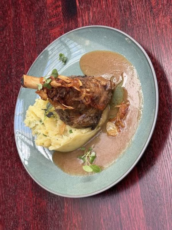 GRILOVANÉ VEPŘOVÉ KOLENO s dijonskou hořčicí, s vejmrdou a chlebem „pivák“