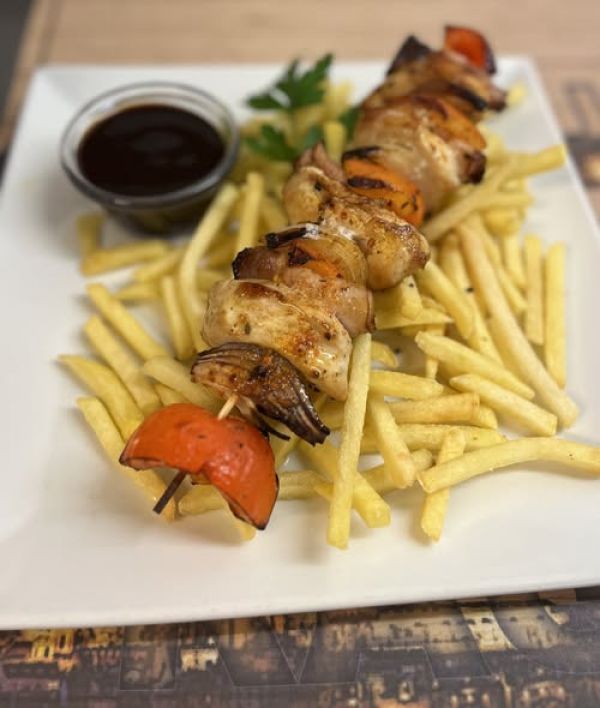 Kuřecí špíz s hranolkami a tatarskou omáčkou