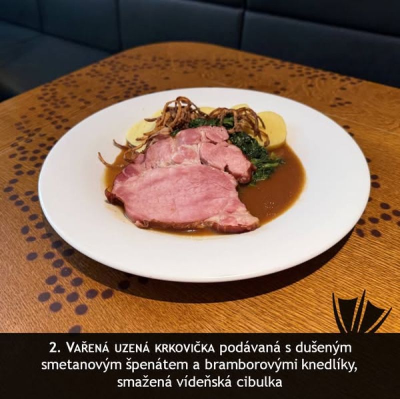 170g Uzená vepřová krkovice alá moravský vrabec s kysaným zelím a houskovým knedlíkem