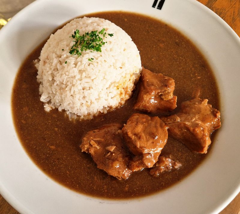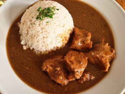 Speciální Birjáni - Zlehka osmažená rýže s jemným indickým kořením podávaná s přílohou ze zekeninového kari, kuřecím masem a vejcem.