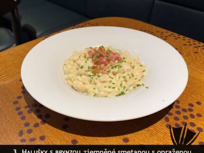 Segedínský guláš z vepřové kýty, houskové knedlíky, noček zakysané smetany A (1, 3, 5, 7) 1357