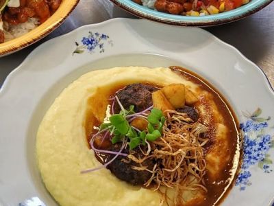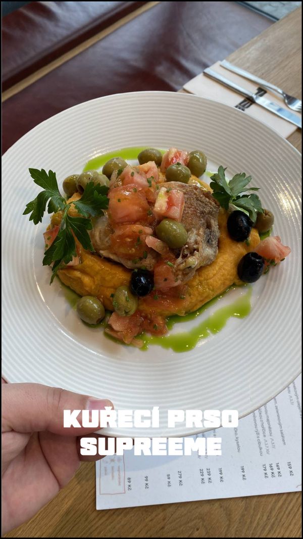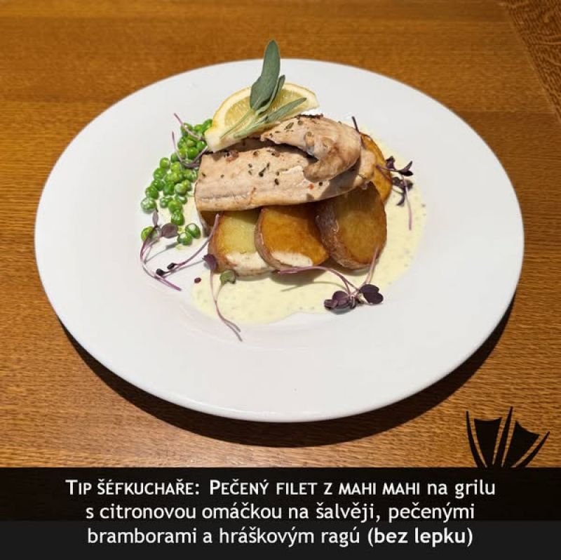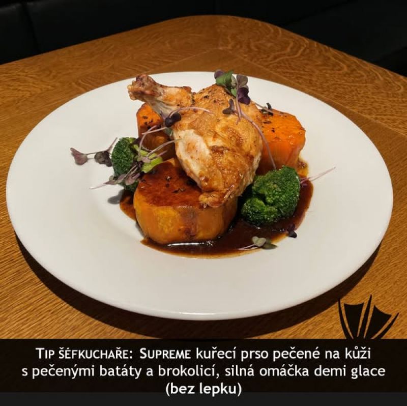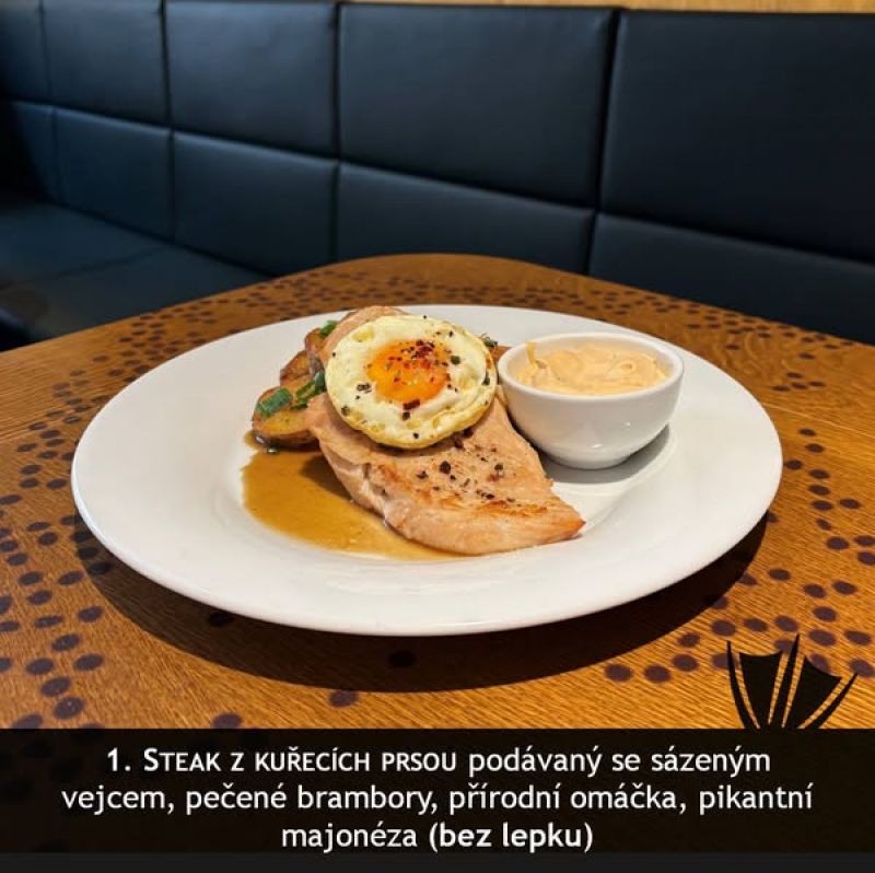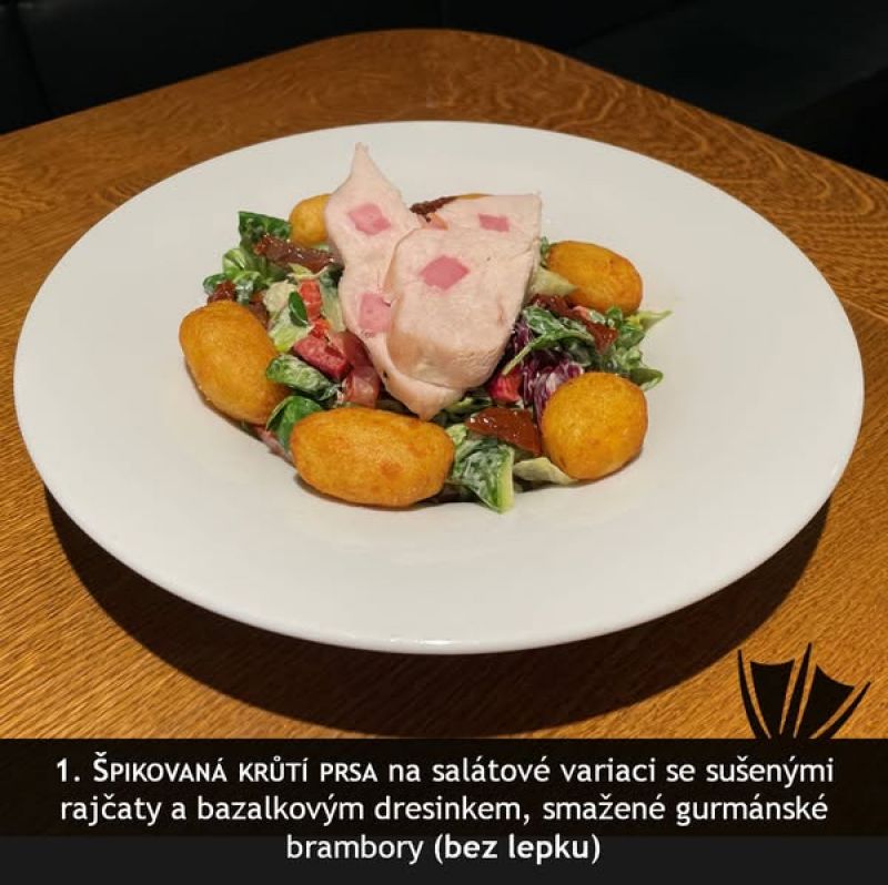 140g kuřecí medailonky s bylinkovou omáčkou, šťouchaný brambor (1,7,9)
