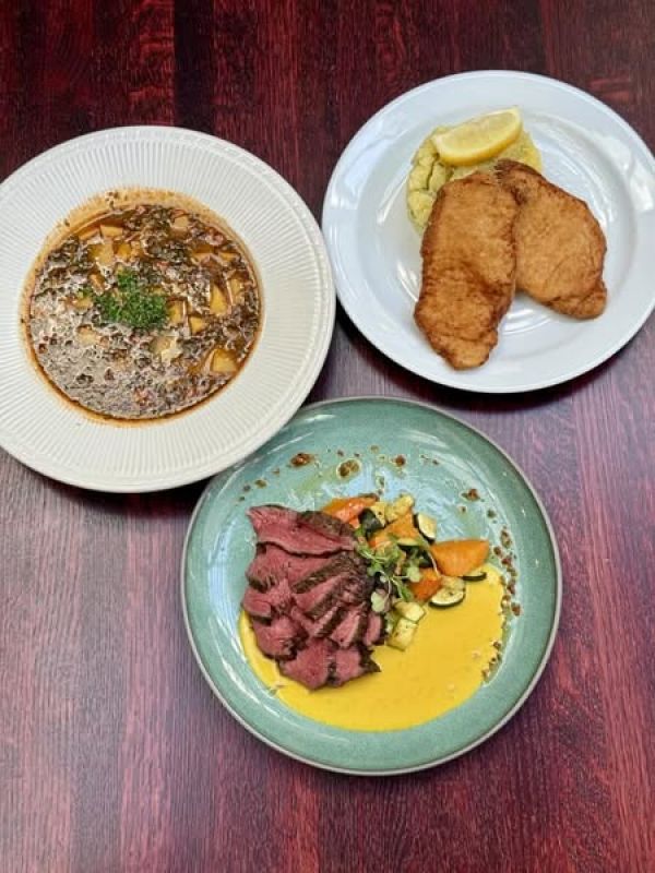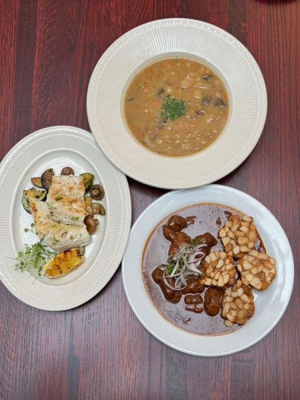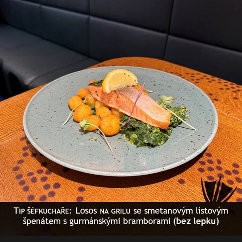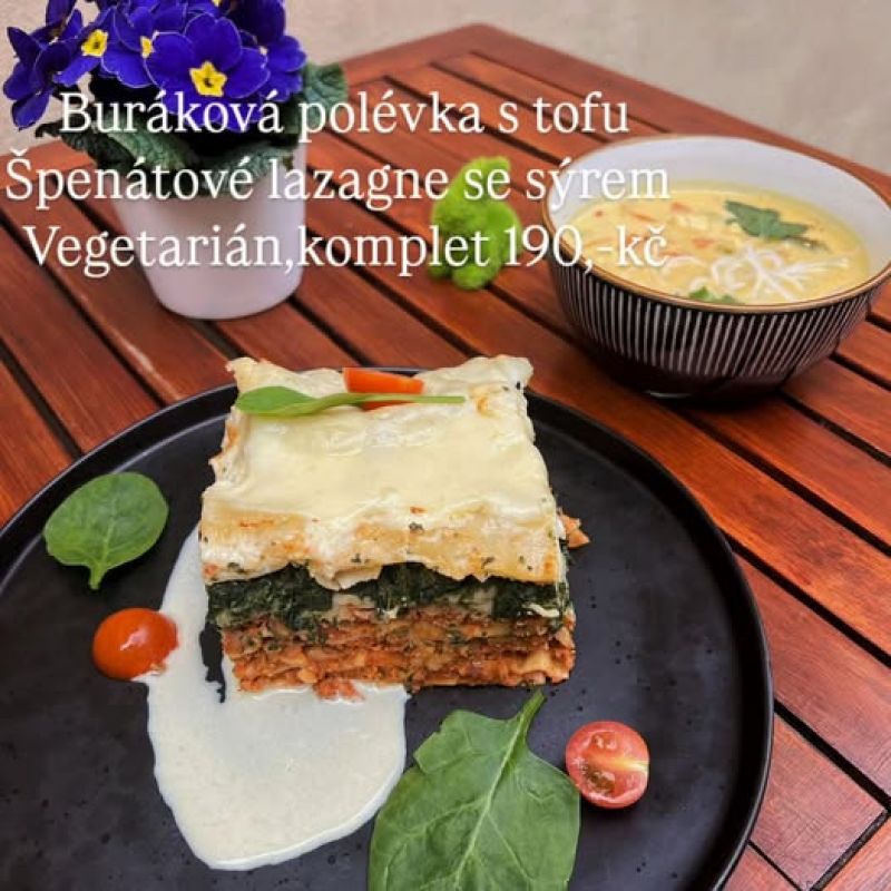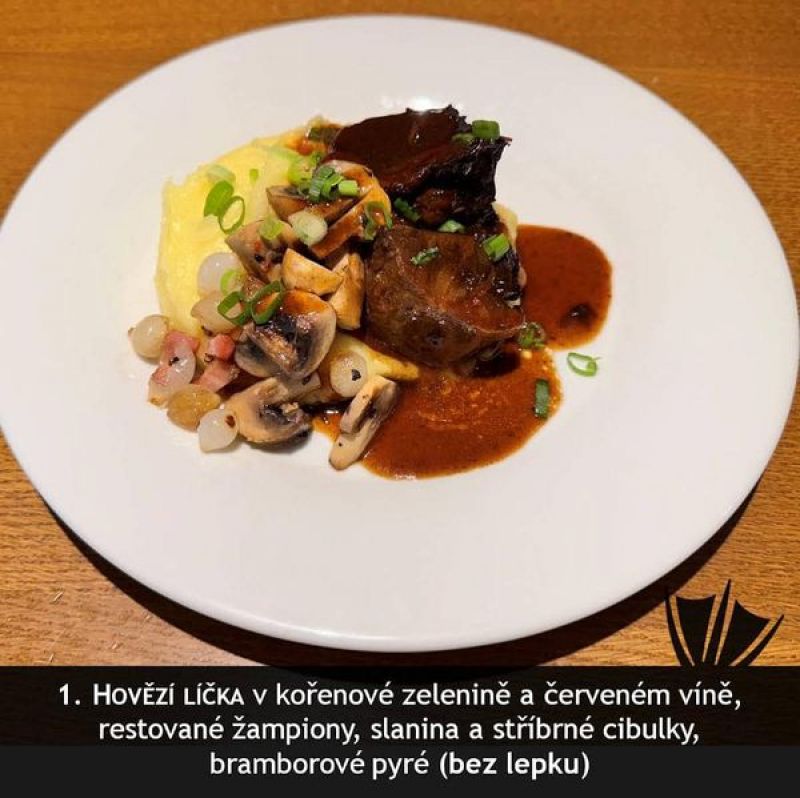 Hovězí kýta pečená na česneku, smetanový špenát, karlovarský knedlík A:1, 3, 6