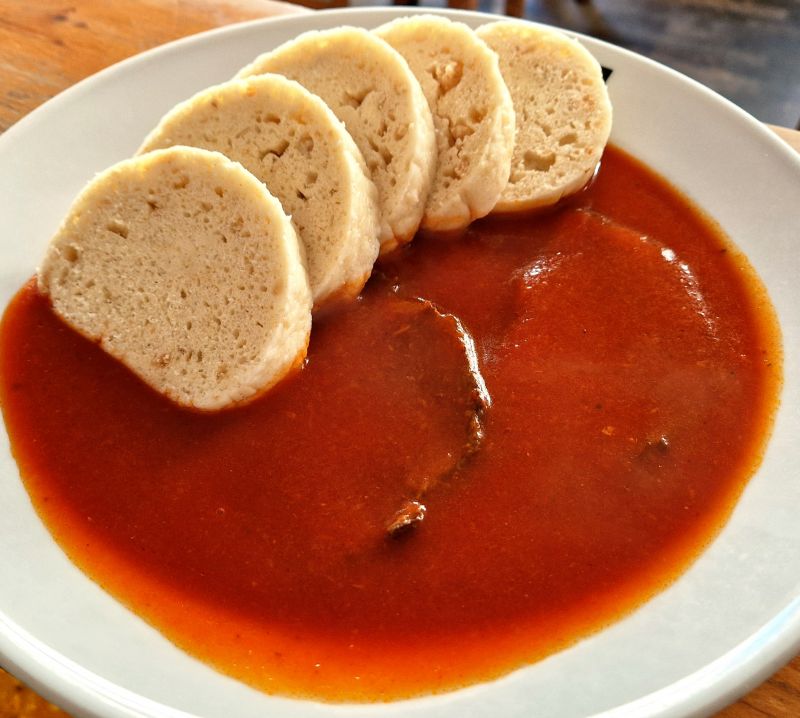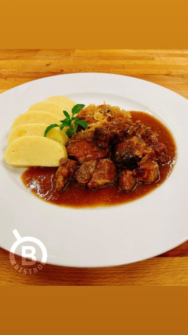 HOVĚZÍ GULÁŠ Z KARABÁČKU s karlovarským knedlíkem