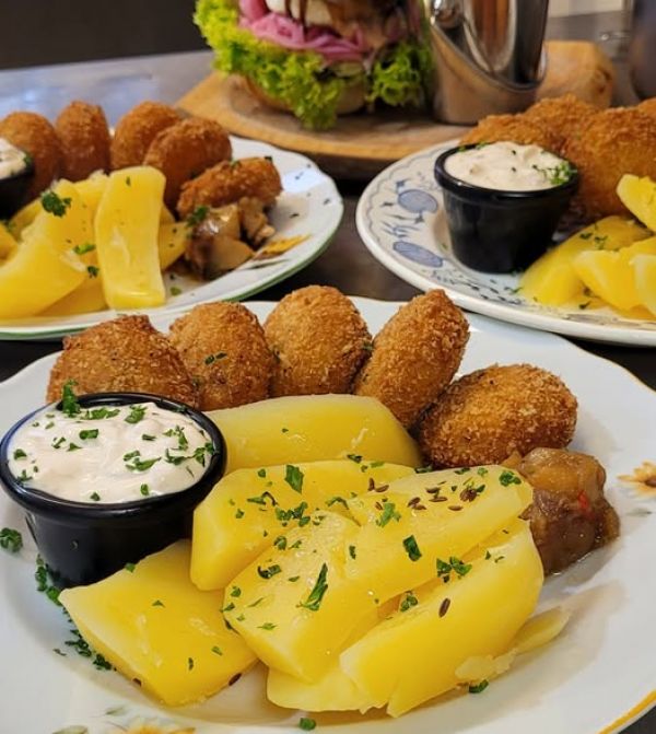 Cmunda po kaplicku (bramborák plněný uzeným masem a zelím)