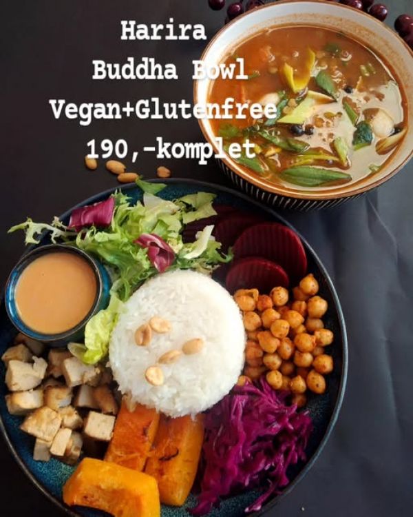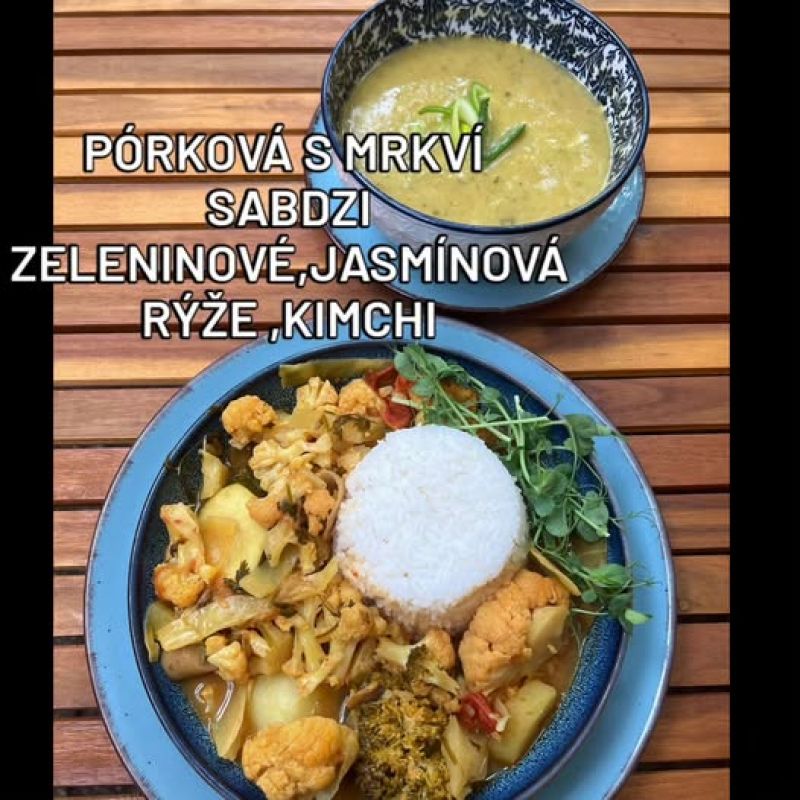 Bulgurové rizoto na curry, čerstvá zelenina, bylinková omeletka, smažená cibulka A (1, 3) 13