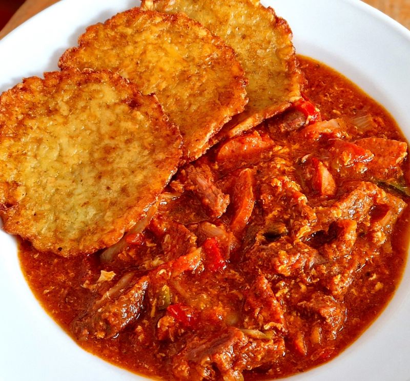 Masová Bhuna - Krájený lilek na jedinečný způsob, s hovězím masem, podávaný s rýží.