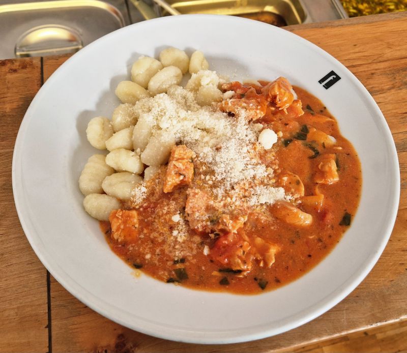 Naše plněné bramborové knedlíky uzeným masem, zelí, cibulka