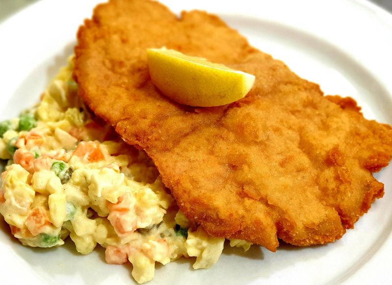 Holandský řízek, bramborová kaše, okurkový salátek 7*1*