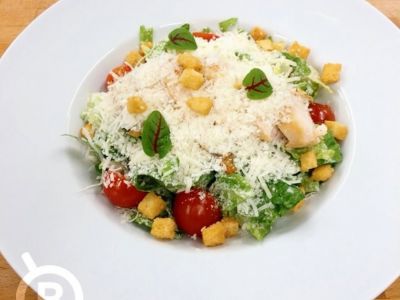 150g Smažený kuřecí řízek v trojobalu, jarní bramborový salát se zeleninou a lehkou majonézou (1,3,7,9,10)