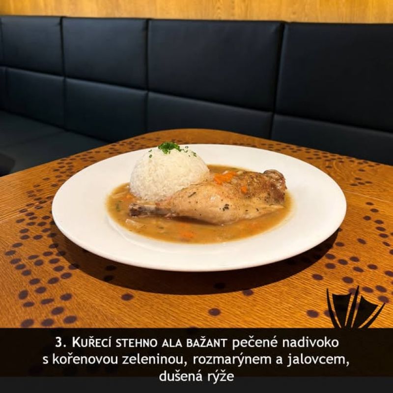 100g Hovězí pečeně na žampiónech, knedlík/rýže 137