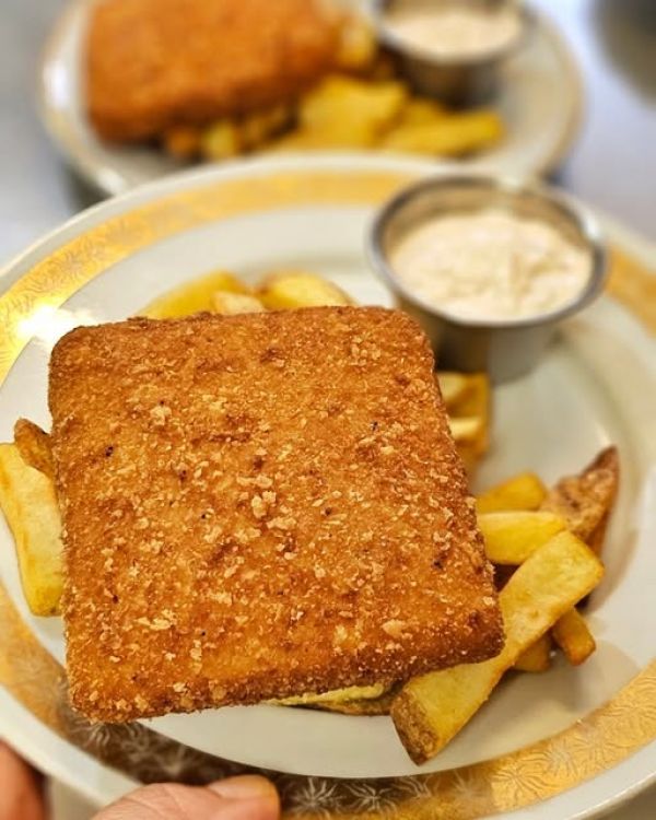 Smažené sýrové DUO s bramborovými hranolky a tatarskou omáčkou 137