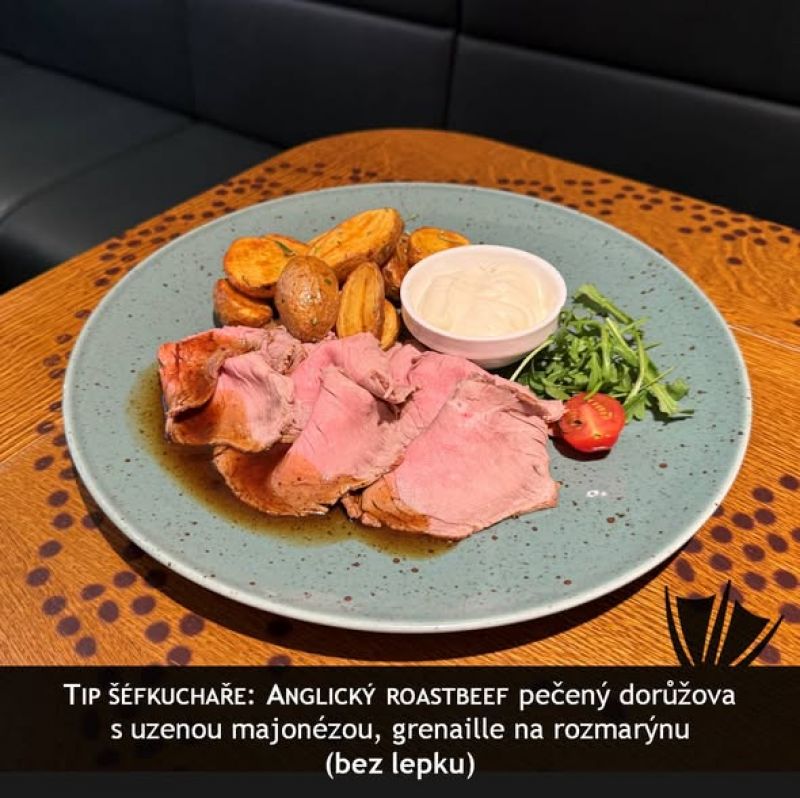 Plzeňský hovězí guláš tažený na pivě, houskové knedlíky (obsahuje 1,3,7,9)