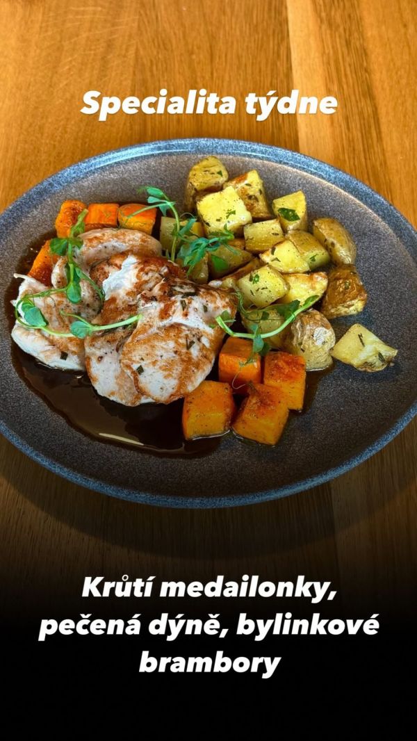 150g Filírovaná vepřová panenka, gratinované brambory a omáčka demi-glace 137