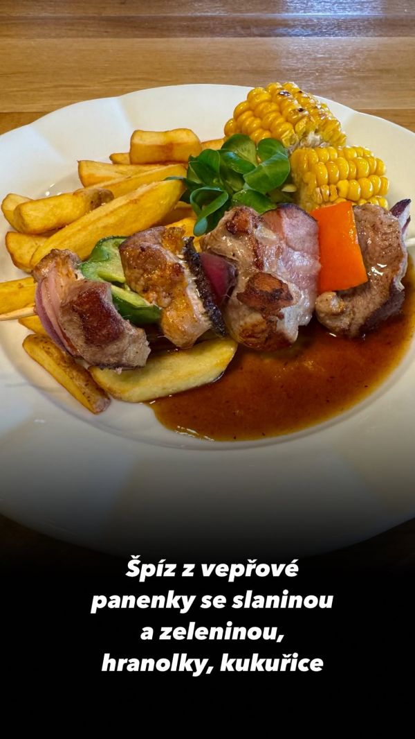 120g Grilovaná vepřová panenka, pepřová omáčka, smetanové brambory s jarní cibulkou a pažitkou 7