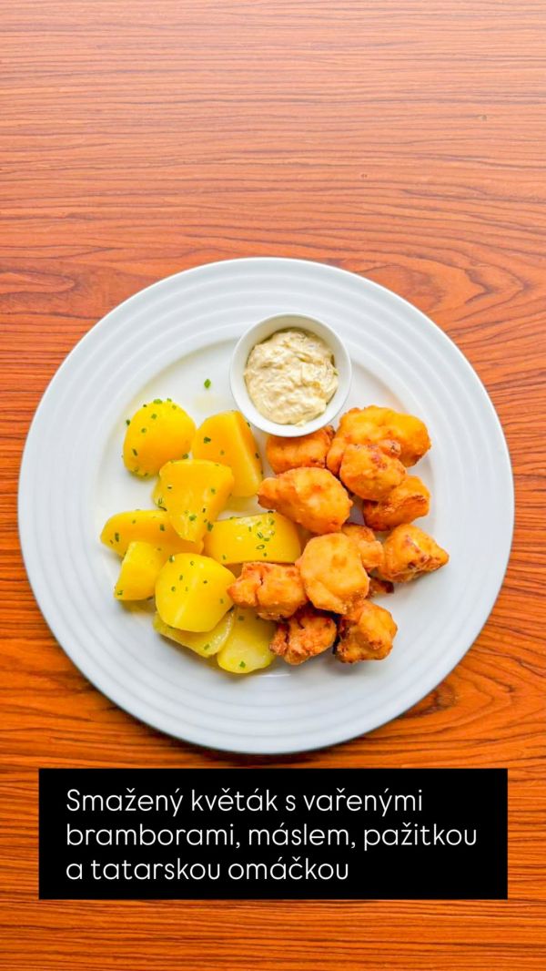 *Smažený hermelín, vařené brambory, tatarská omáčka