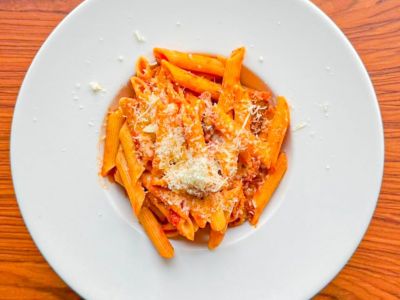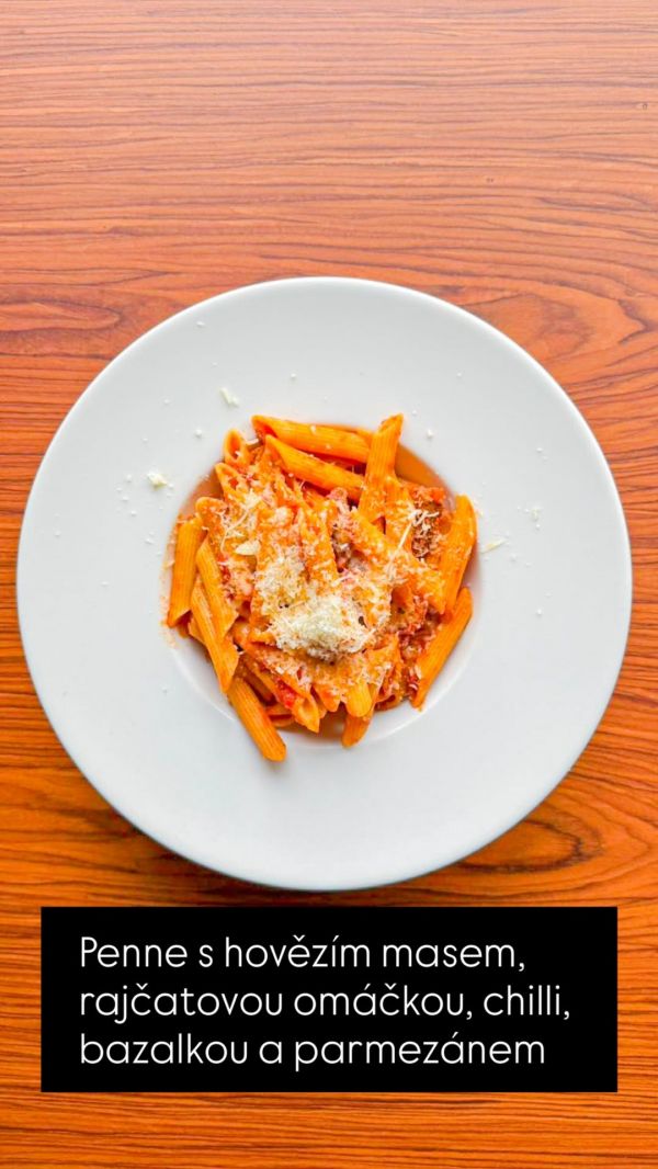 250g Fusili s pečeným lilkem a cuketou v rajčatové omáčce, parmazán, rukola 17
