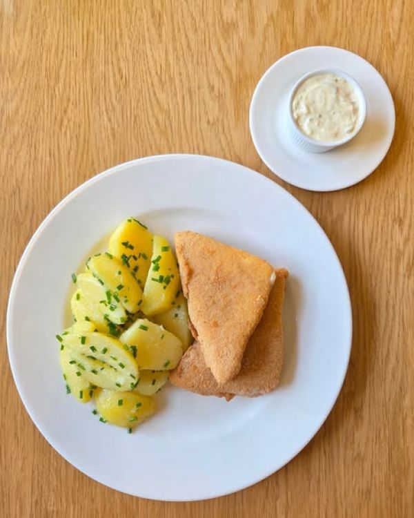 Smažený,, Královský" hermelín, vařený brambor, domácí tatarská omáčka