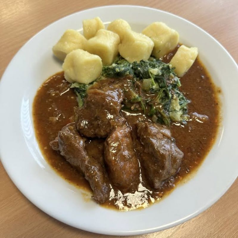 Květáková na kari / Segedínský guláš, houskový knedlík