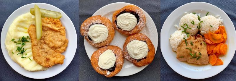 150 g smažený vepřový řízek, brambory 190. - Kč
