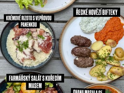 Menu: Hovězí vývar s masem a nudlemi, Kuřecí prsíčka na paprice, houskový knedlík, 2 dcl Malinovka