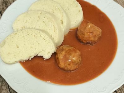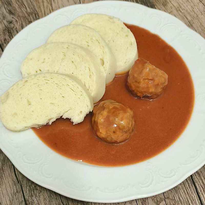 130g Masové koule, rajská omáčka, houskový knedlík *1, 3, 7, 9