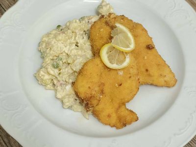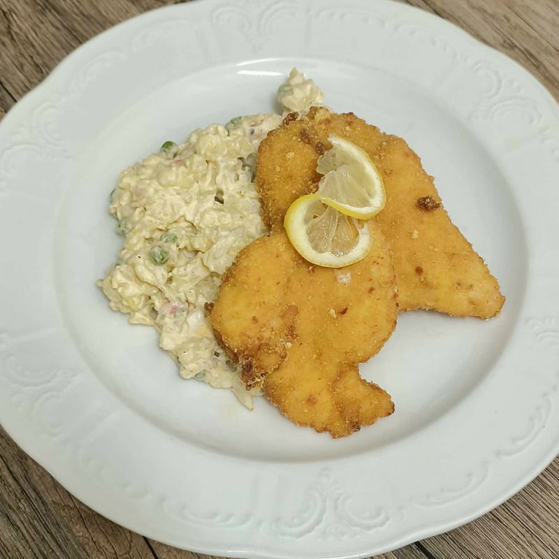 120g Smažený vepřový ŘÍZEK s bramborovým salátem