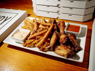 Čertovská kuřecí směs, hranolky