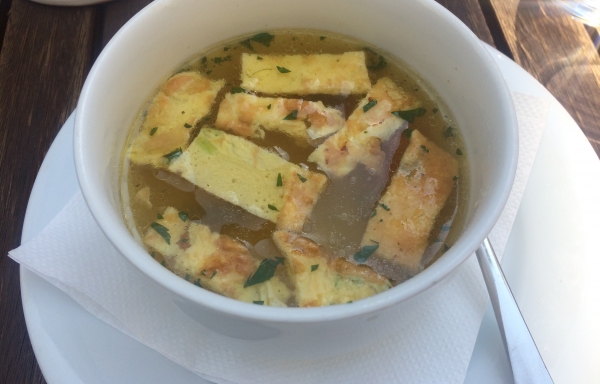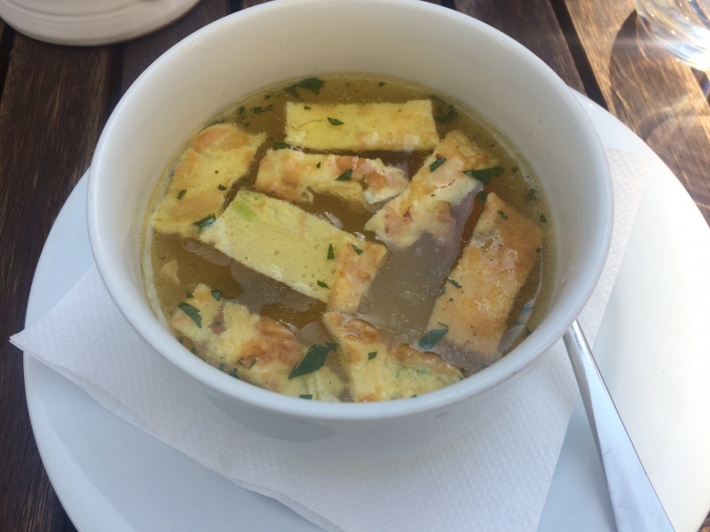 Polévka byla grandiózní a ta vaječná omeleta k tomu, jednoduše mňam! Noky špenátem a omáčkou super, nicméně hlavní surovina losos - působil na talíři jako chudý příbuzný :-) bylo ho málo a jeho chuť žádná pecka. Venkovní zahrádka a posezení na ní je moc příjemné.