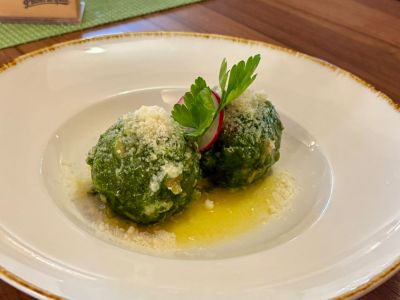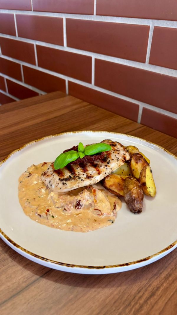 350g/120g Gnocchi se špenátovou omáčkou, grilovaná kuřecí prsa, Grana Padano