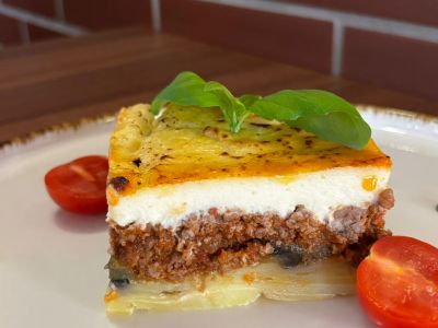 Lasagne s kuřecím masem, mozzarellou a rajčaty