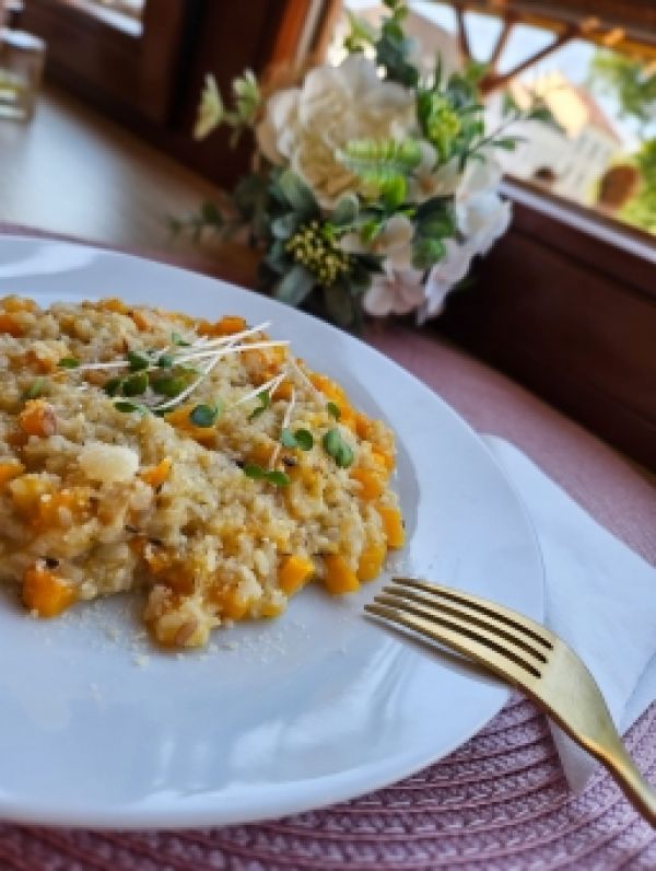 200 g Konfitovaná vepřová krkovice, dušené zelí, chlupaté knedlíky 137912