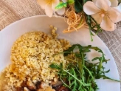 120g Kuřecí prsa po asijsku (cibule, med, pór, víno), rýže 11