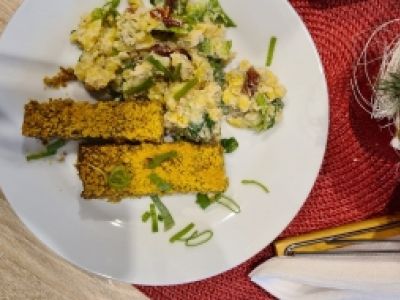 150g Smažené kuřecí stripsy, bramborová kaše 1371112