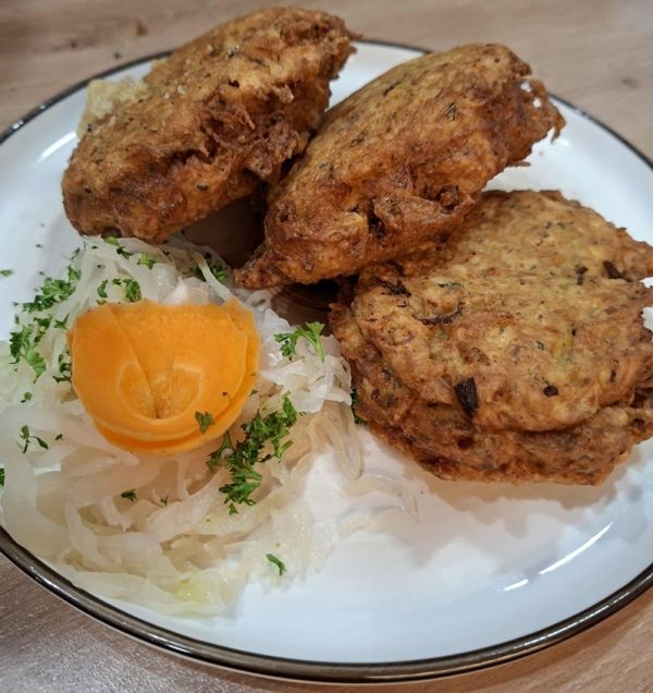 Kachní stehýnko, halušky se zelím, cibulka 1379