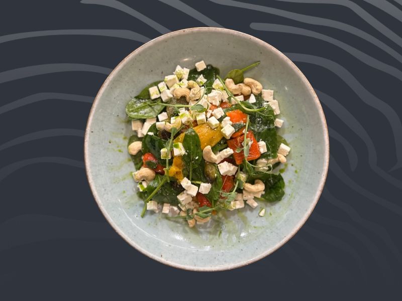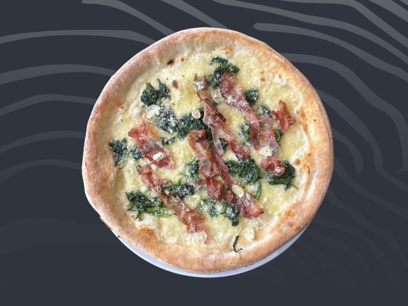150g Vepřové kostky na česneku, špenát, domácí bramborový knedlik