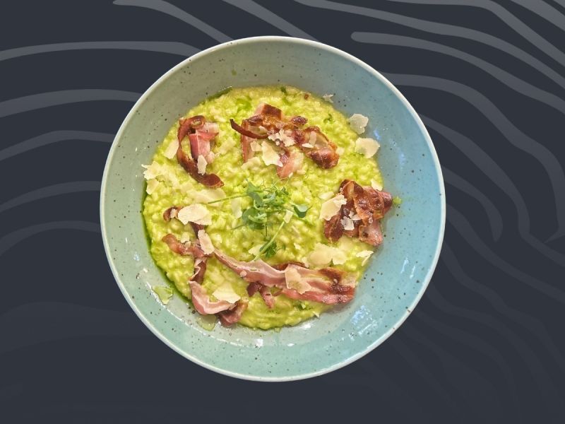 Grilovaný vepřový steak, italské rizoto s grilovanou cuketou, parmazán