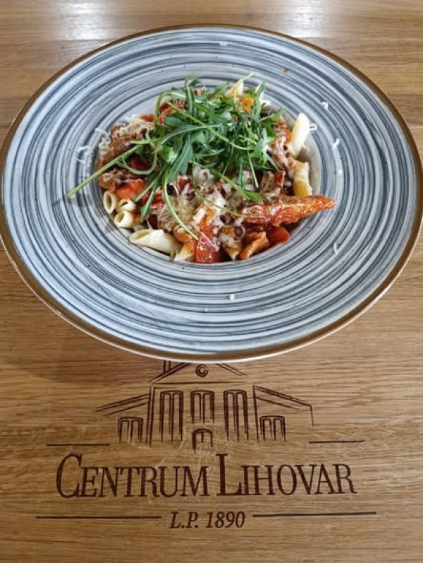 150g Penne s kousky lososa, česnekem, cherry rajčaty a mladým špenátem 134712