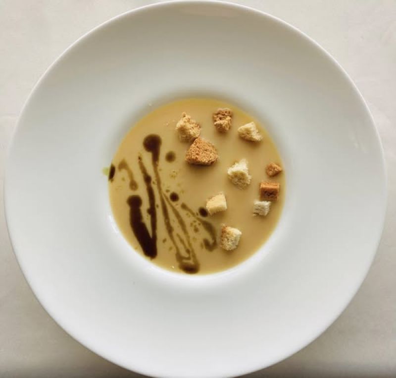 Česnekačka se šunkou, sýrem, vajíčkem a krutony
