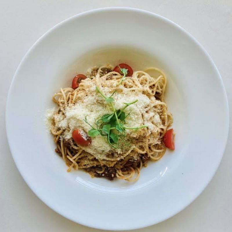 350gr Těstovinové hnízdo s masovými kuličkami a omáčkou s čestvých rajčat s bazalkou (kuřecí)