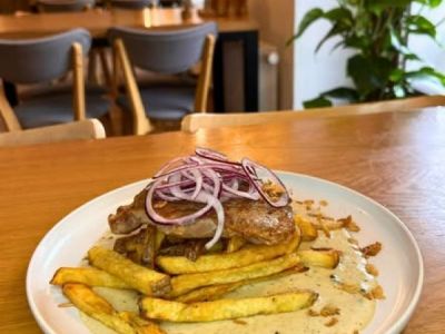 Vepřová játra na roštu, hranolky, tatarka