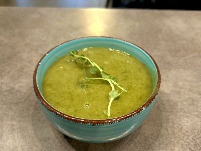 Polévka + Krůtí steak na gril. zelenině, br. krokety