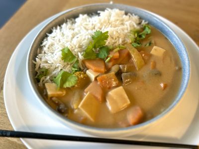 Menu 5 Vepřové nudličky z panenky s krémovou hříbkovou omáčkou, dušená jasmínová rýže